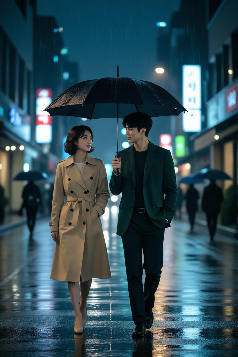 낭만과 친밀감: 비 오는 날 한 우산 아래 두 남녀가 함께 걷는 장면은 사랑의 시작을 알리는 세계 공통의 클리셰입니다. 우산은 외부 세계의 혼란으로부터 두 사람만의 사적이고 친밀한 공간을 만들어주는 역할을 합니다.49