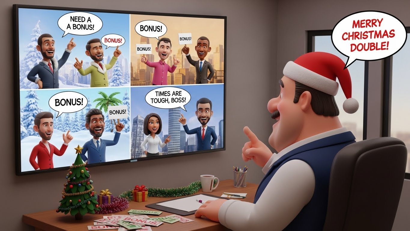 #MomoAI #ChristmasBonus #MerryChristmasDouble #BossTrap #Shorts #OfficeHumor #3DAnimation #ViralVideo #HolidaySeason #WorkLife #BonusPlease #AI #TrendAlert #Christmas2025 #FunnyShorts