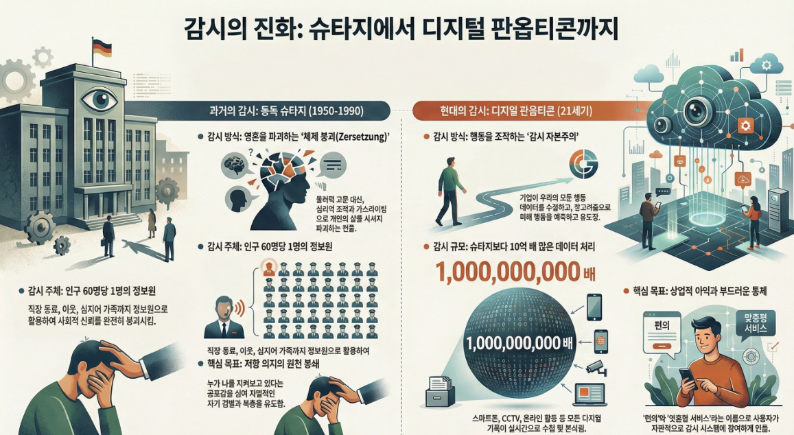[심층 연구 보고서] 감시의 전이: 동독 슈타지의 '체제 붕괴(Zersetzung)'에서 알고리즘 기반 '디지털 판옵티콘' 사회로의 진화