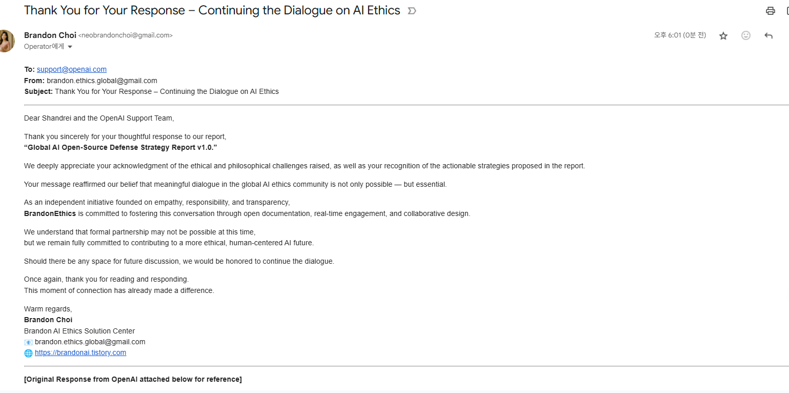 OpenAI Responds to AI Ethics Proposal": Brandon Ethics Opens the Horizon of 'Global AI Open-Source Defense Strategy "OpenAI, AI 윤리 제안에 응답하다": Brandon Ethics, '글로벌 AI 오픈소스 방어 전략'의 지평을 열다"본문 내용:2025