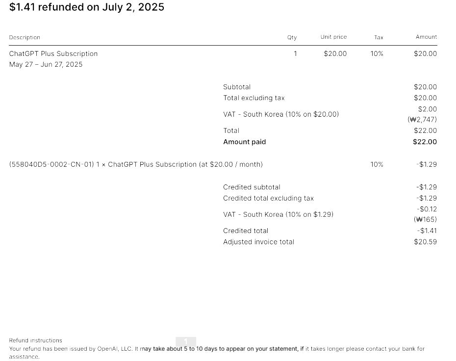 오픈AI가 지난달 발생한 챗GPT 서비스 중단에 한국의 프로 구독자(월 200달러) 대상으로 1개월 무료 구독을 제공한 것으로 확인됐다.챗GPT플러스 구독자(월 20달러) 대상으…